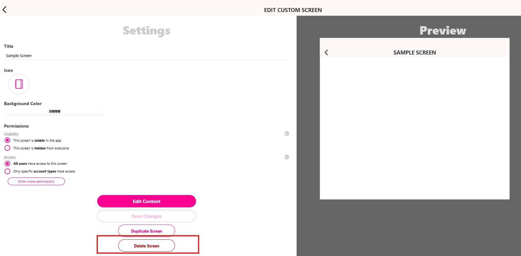 ⚠️ Note: Deleting a screen will permanently remove its content and cannot be undone. If you might need the content later, consider hiding the screen instead.