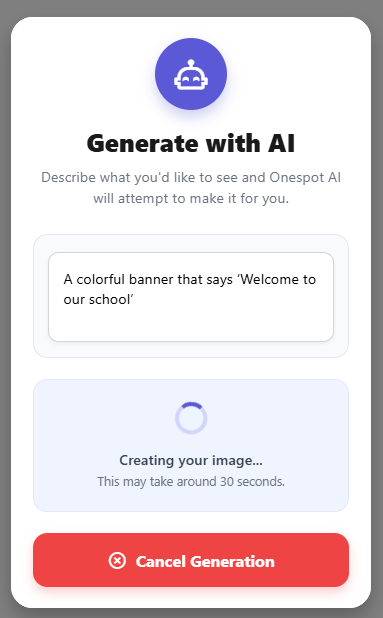 Onespot AI allows you to create custom images by simply describing what you want. Whether you're designing a banner, a classroom graphic, or a school announcement, you can generate high-quality visuals in seconds using AI. This guide walks you through the process from start to finish.