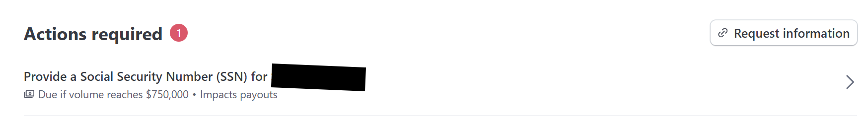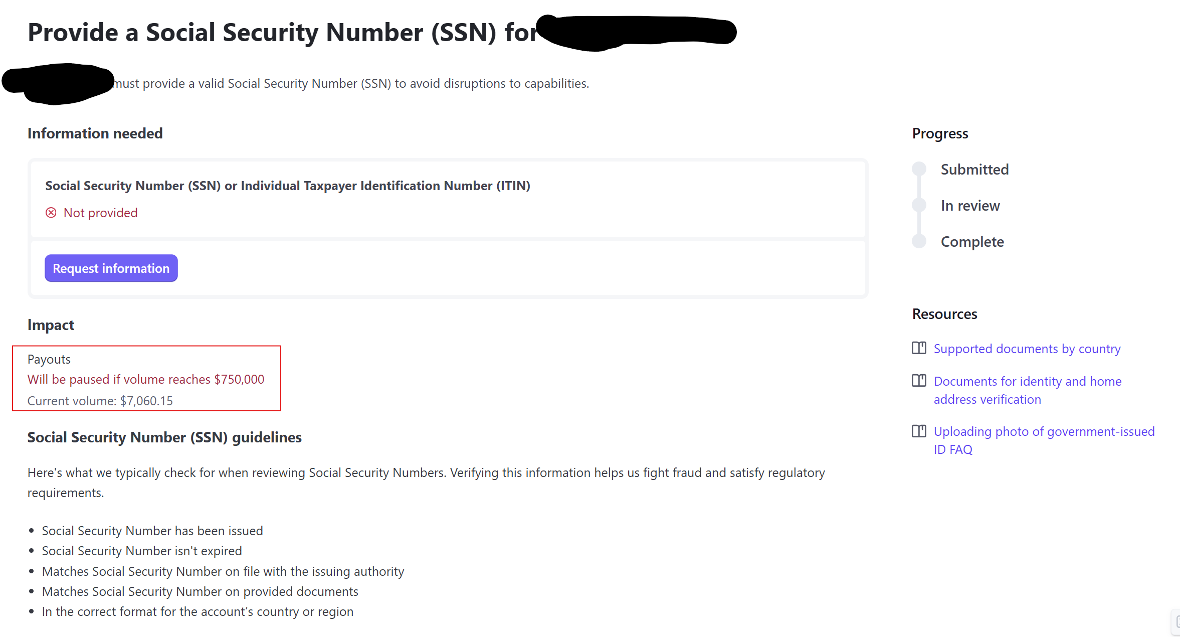 Stripe's default global policy requires additional identity verification once your account reaches $500,000 in lifetime card volume. This may include: