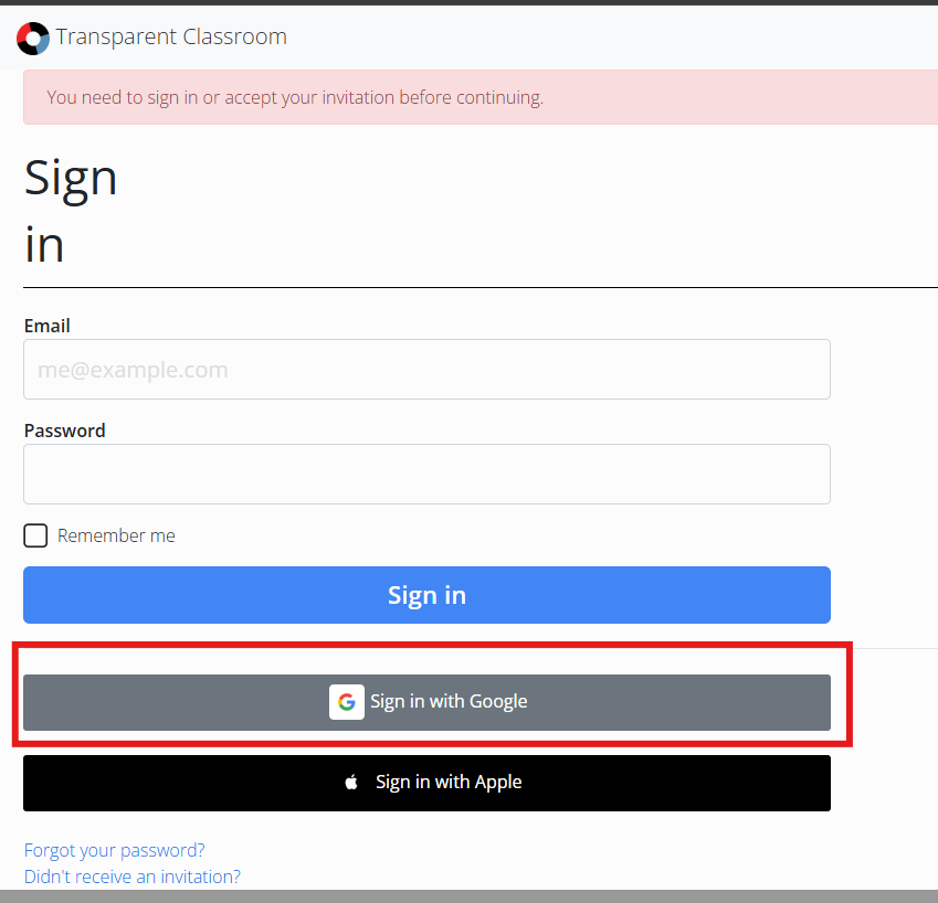 - Click Sign in with Transparent Classroom.