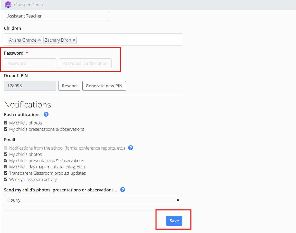 You can sign in to Transparent Classroom using your Google account. If you forget your TC password, you can reset it directly in your TC profile settings. Once updated, this new password can also be used to log in to Onespot with your TC credentials.
