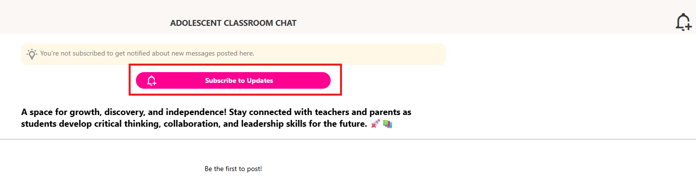 🗨️Parents can subscribe to group chats in Onespot to stay updated on classroom news, reminders, and discussions. Once subscribed, they’ll receive notifications whenever someone posts a new message in that chat.