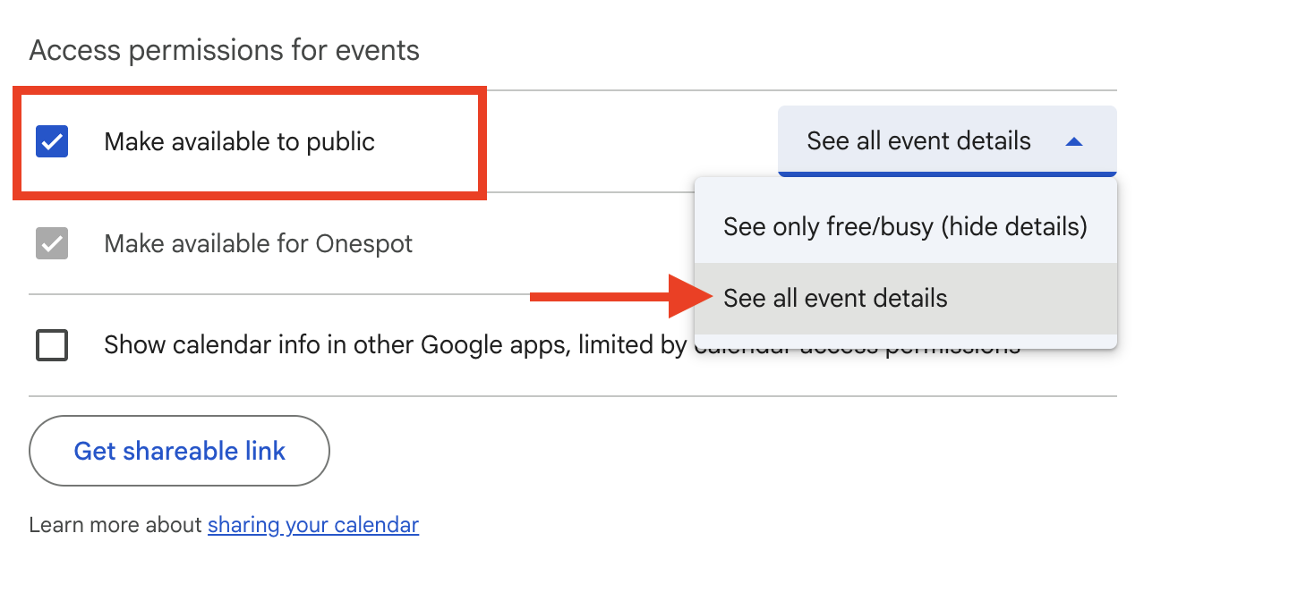 Make sure the calendar is set to public — this often fixes visibility issues.