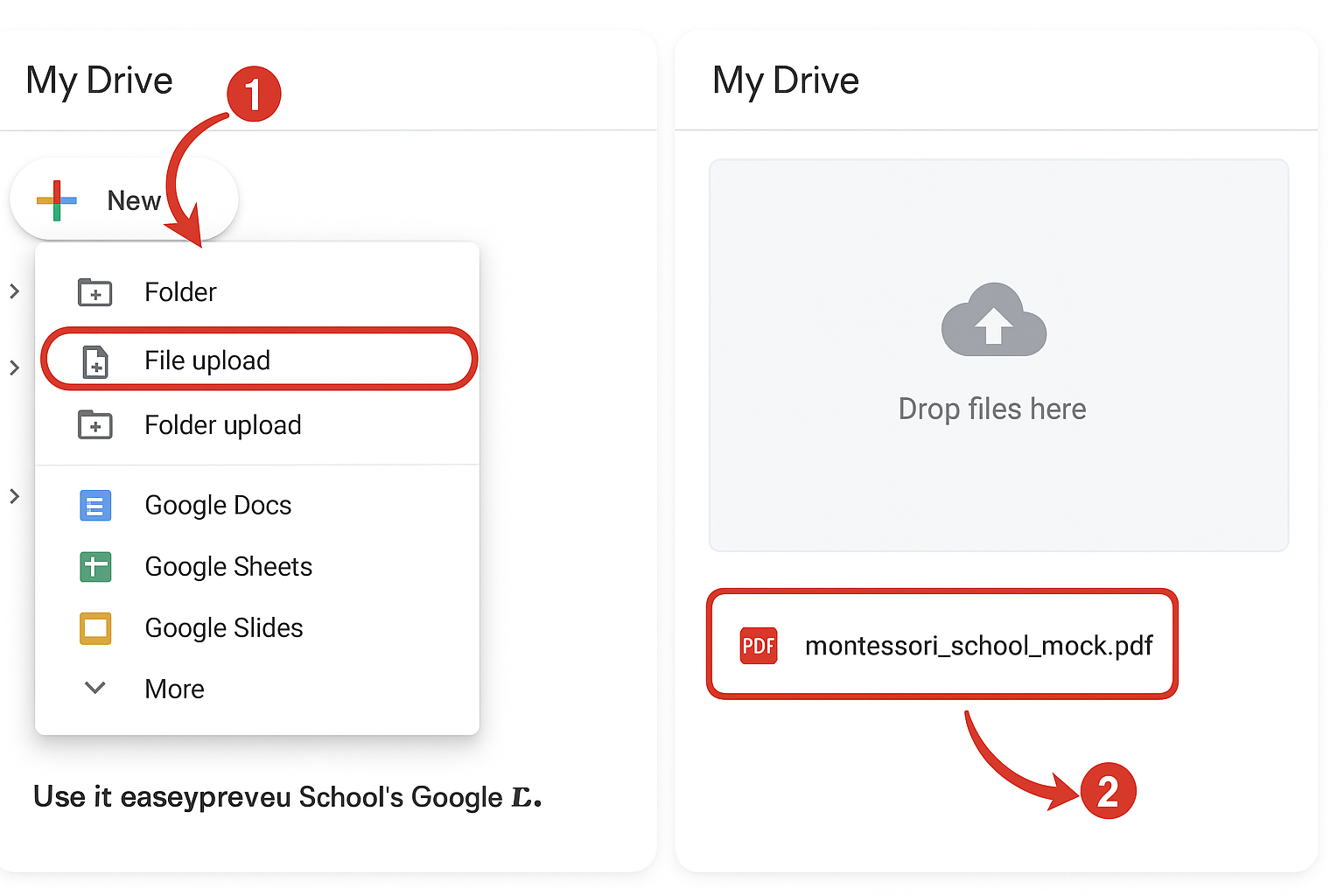 Step 1: Upload Your PDF to Your School’s Google Drive (Onespot Provided)