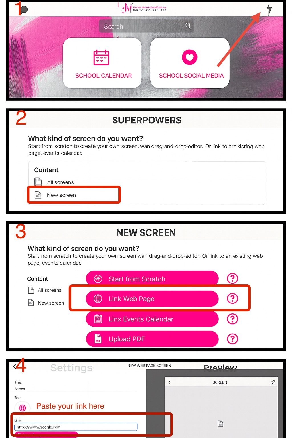 Note: Step 3 shows how to add your PDF link as a new screen, but that’s not the only way. You can also add it as a web button by creating a custom screen to keep multiple documents on one page.