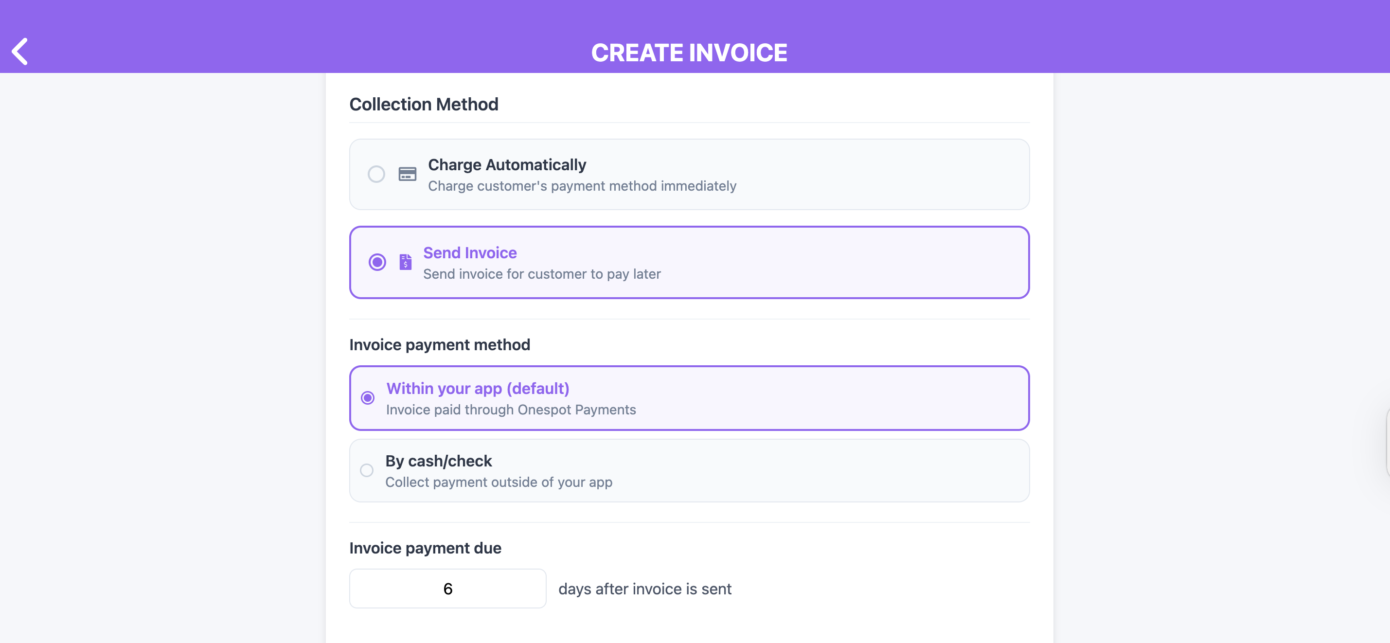 - Ensure it is set to 'Send Invoice' for the customer to pay later.