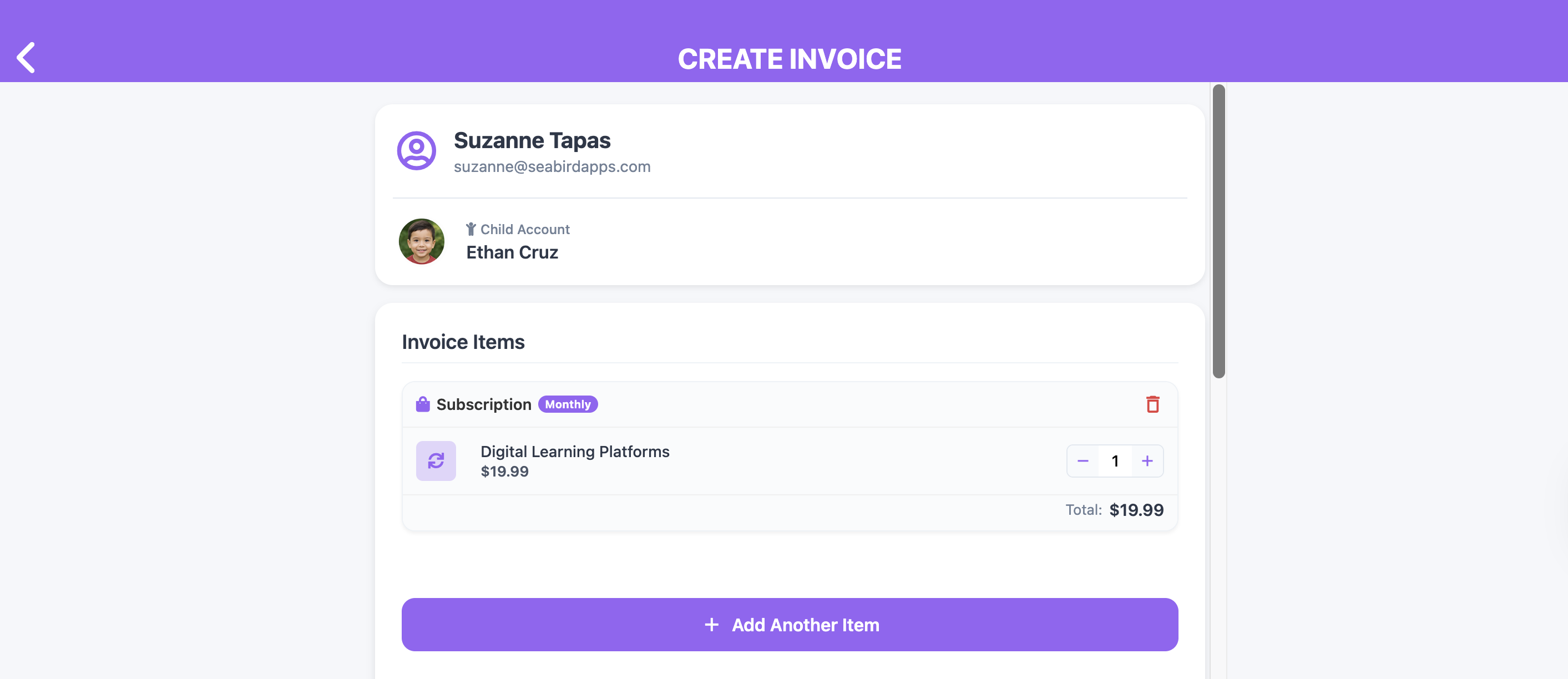 - Choose the student profile for whom you want to set up the subscription (e.g., Ethan).