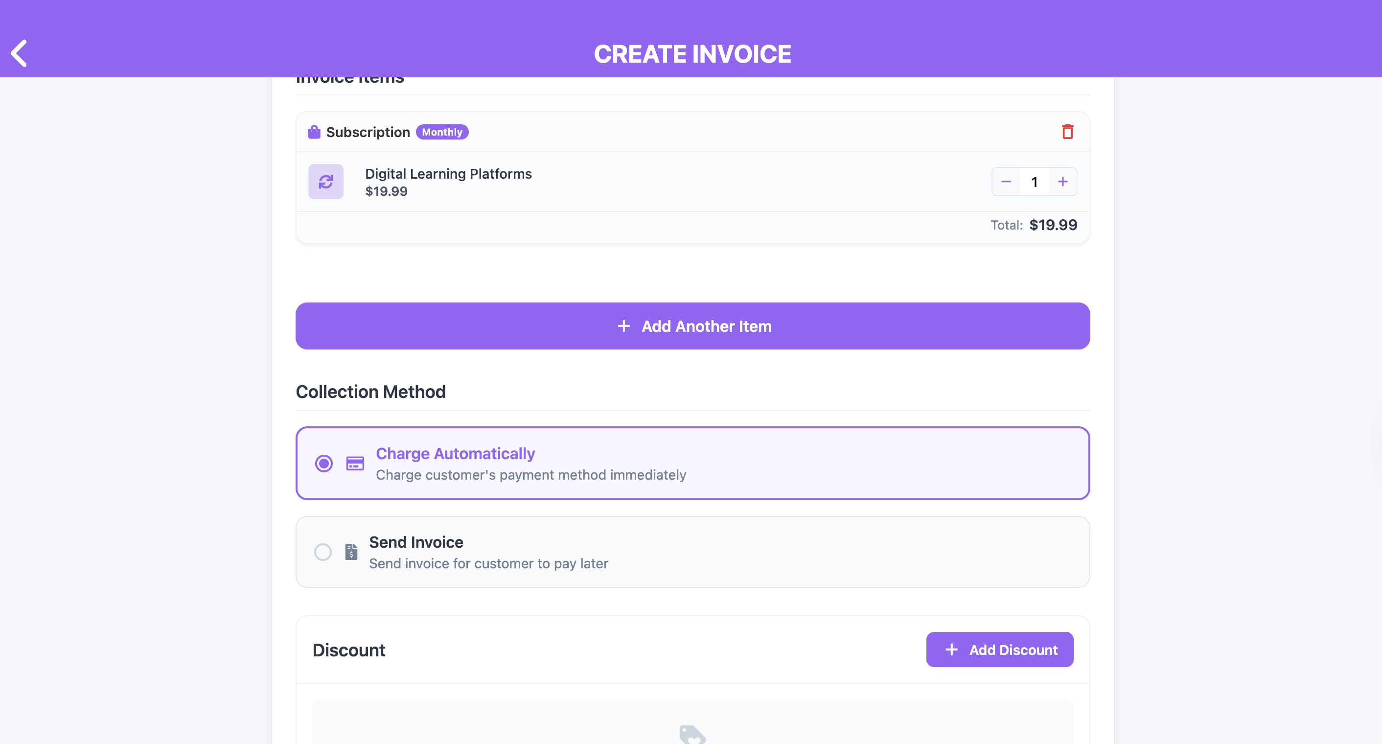 - Under Collection Method, make sure it is set to Charge Automatically.