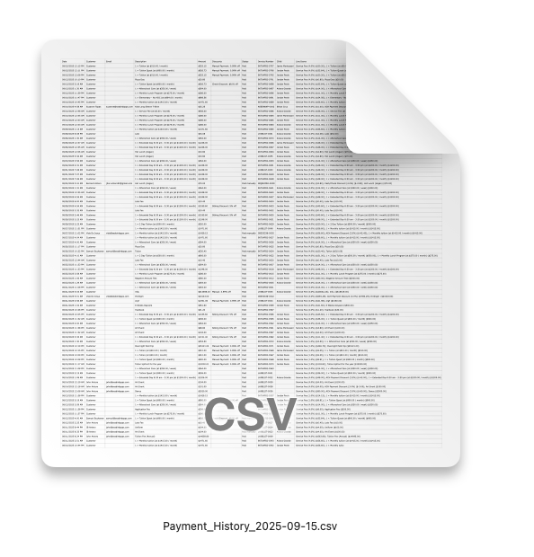 - Once exported, your payment history will appear as a CSV file or downloadable summary.