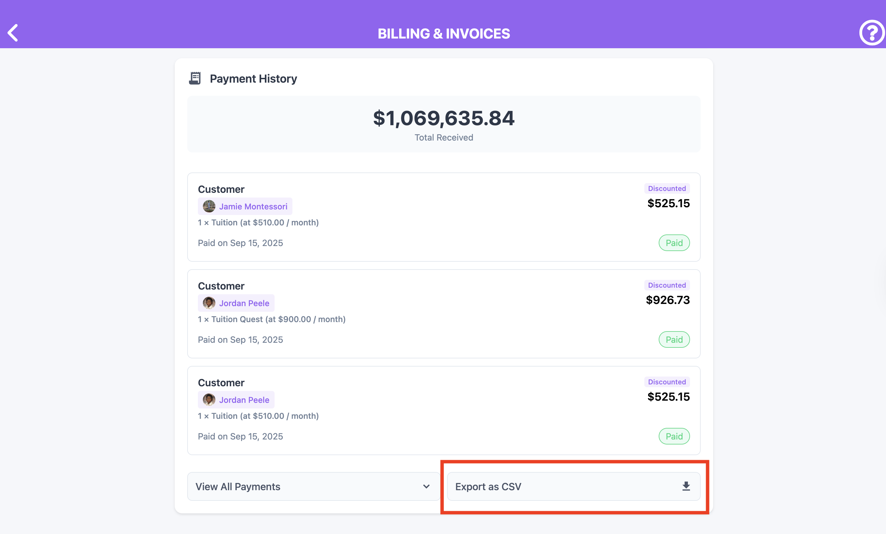 - Look for the option that says “View All Payments” or “Export as CSV.”