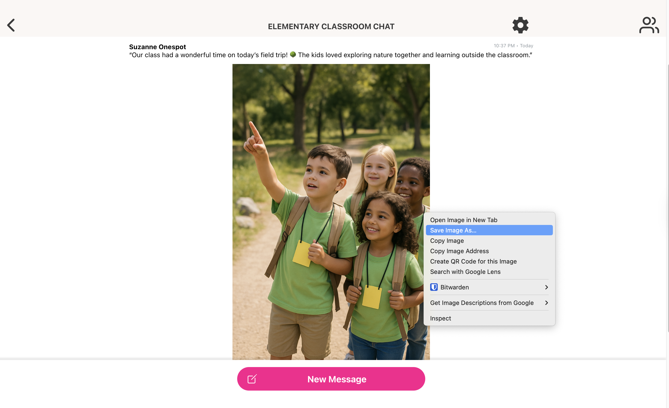 - In your school app, open the specific group chat (e.g., Elementary Classroom Chat).