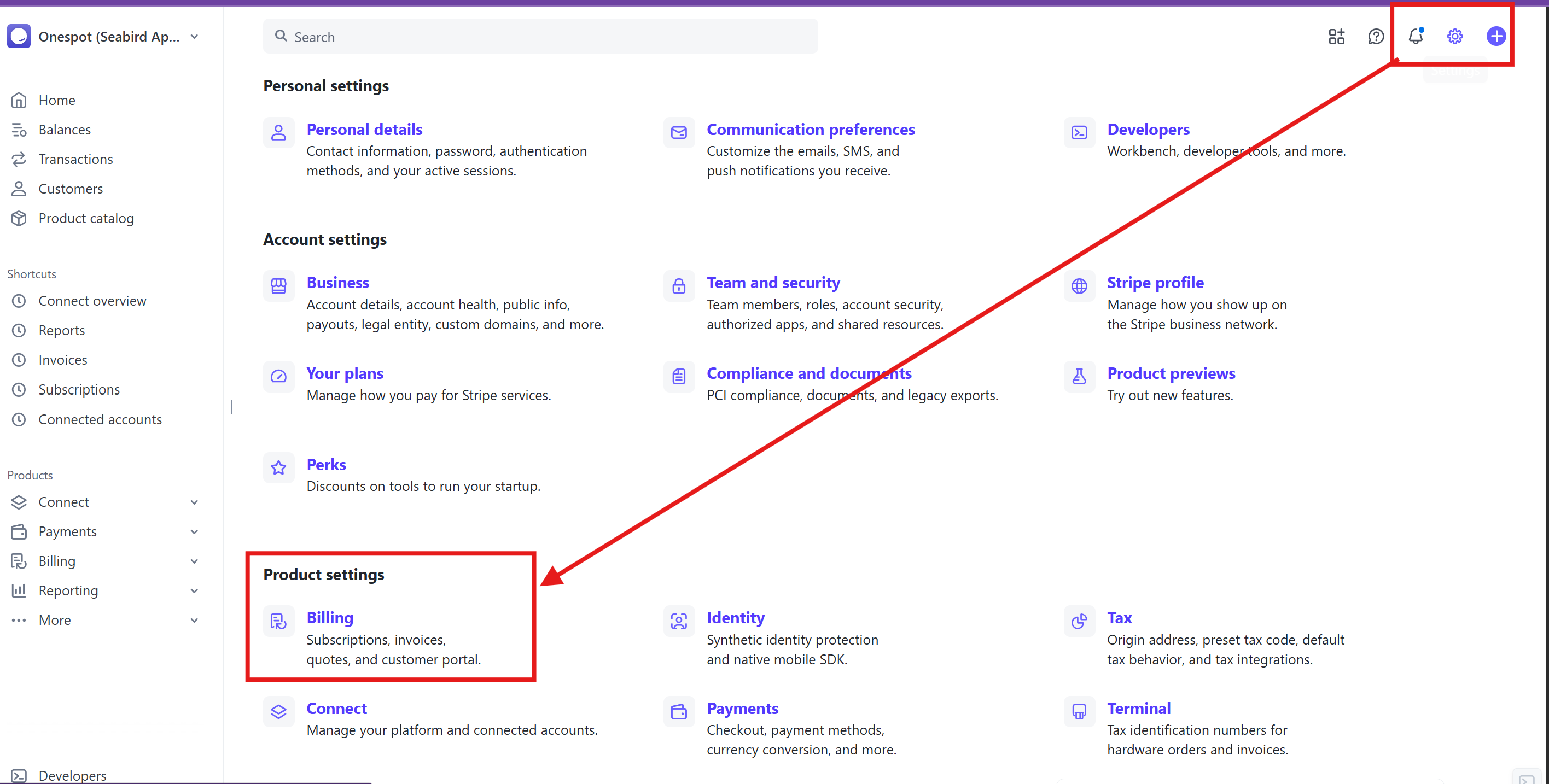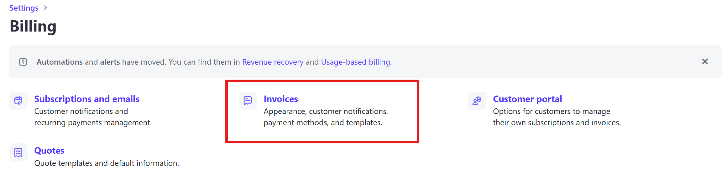- Go to Settings → Tax settings (or Billing/Invoices section) in Stripe