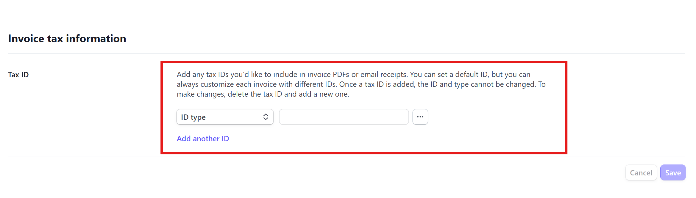 - Option 2: Select Invoice Template settings (under Billing → Invoice Template → Manage tax information), you can specify your business’s tax identification (e.g. VAT number, EIN) so invoices and receipts include your tax ID. Stripe Support