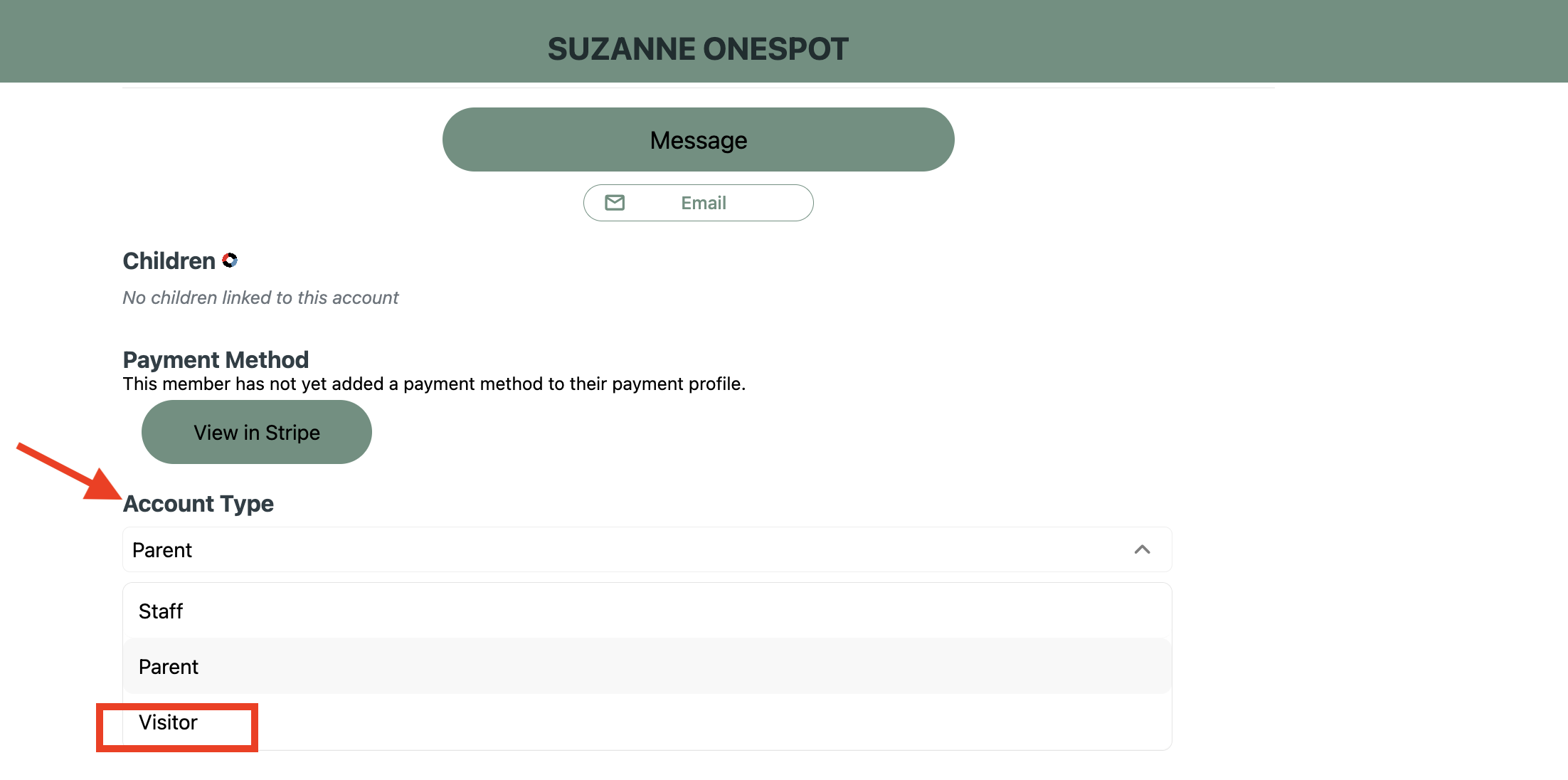 - Change their Account Type from Parent → Visitor