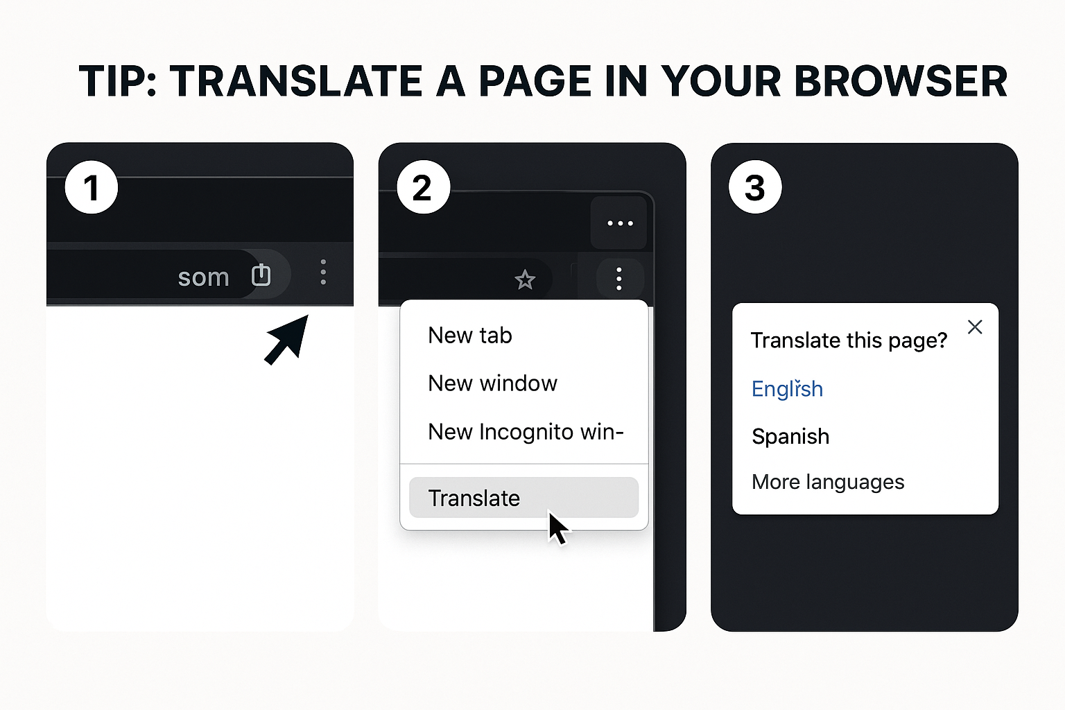 💡 Note: If you don’t see the option, make sure translation is turned on in your browser settings under Languages → Offer to translate pages.