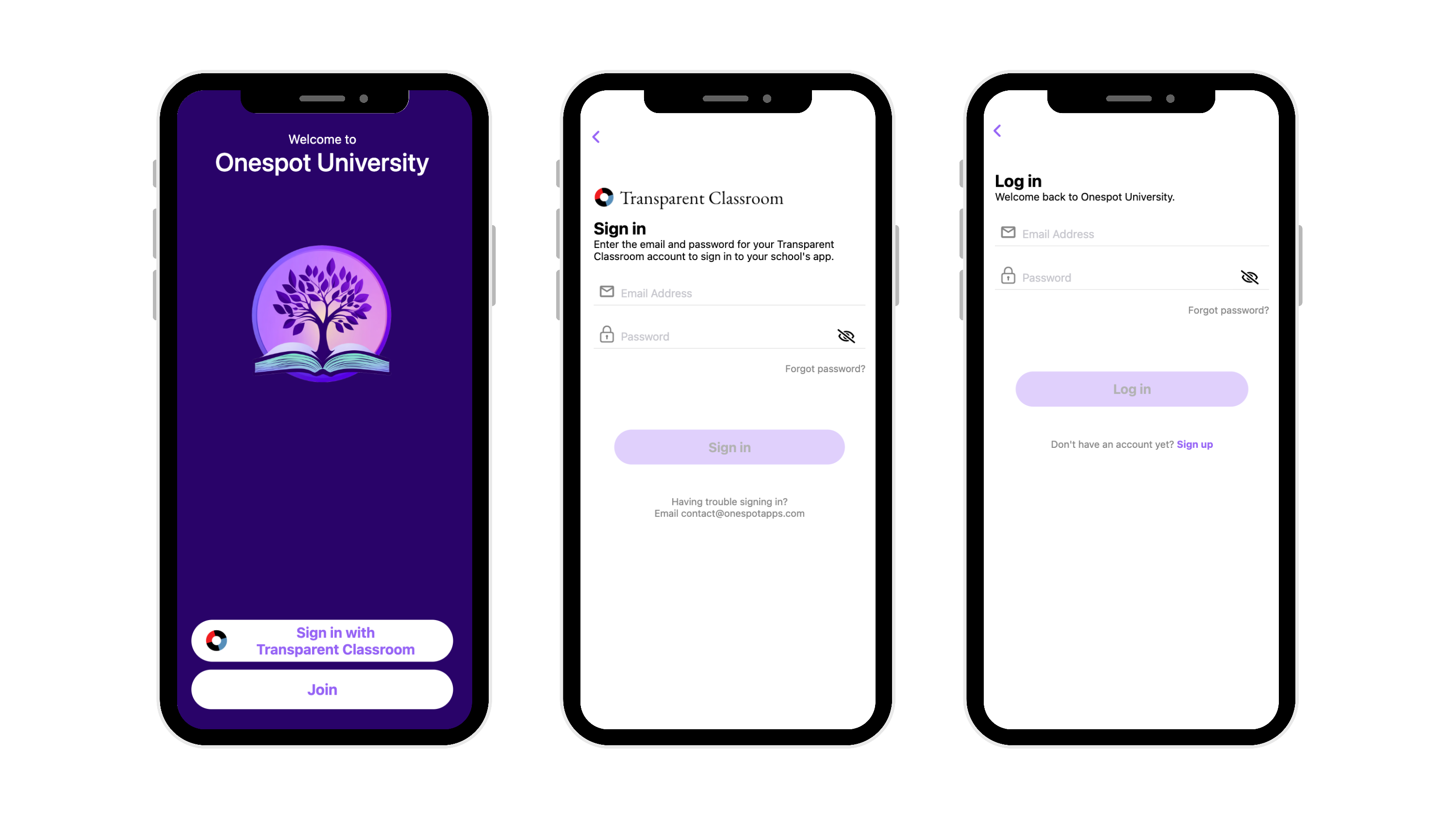 Tap “Sign in with Transparent Classroom” and use your existing Transparent Classroom email and password.