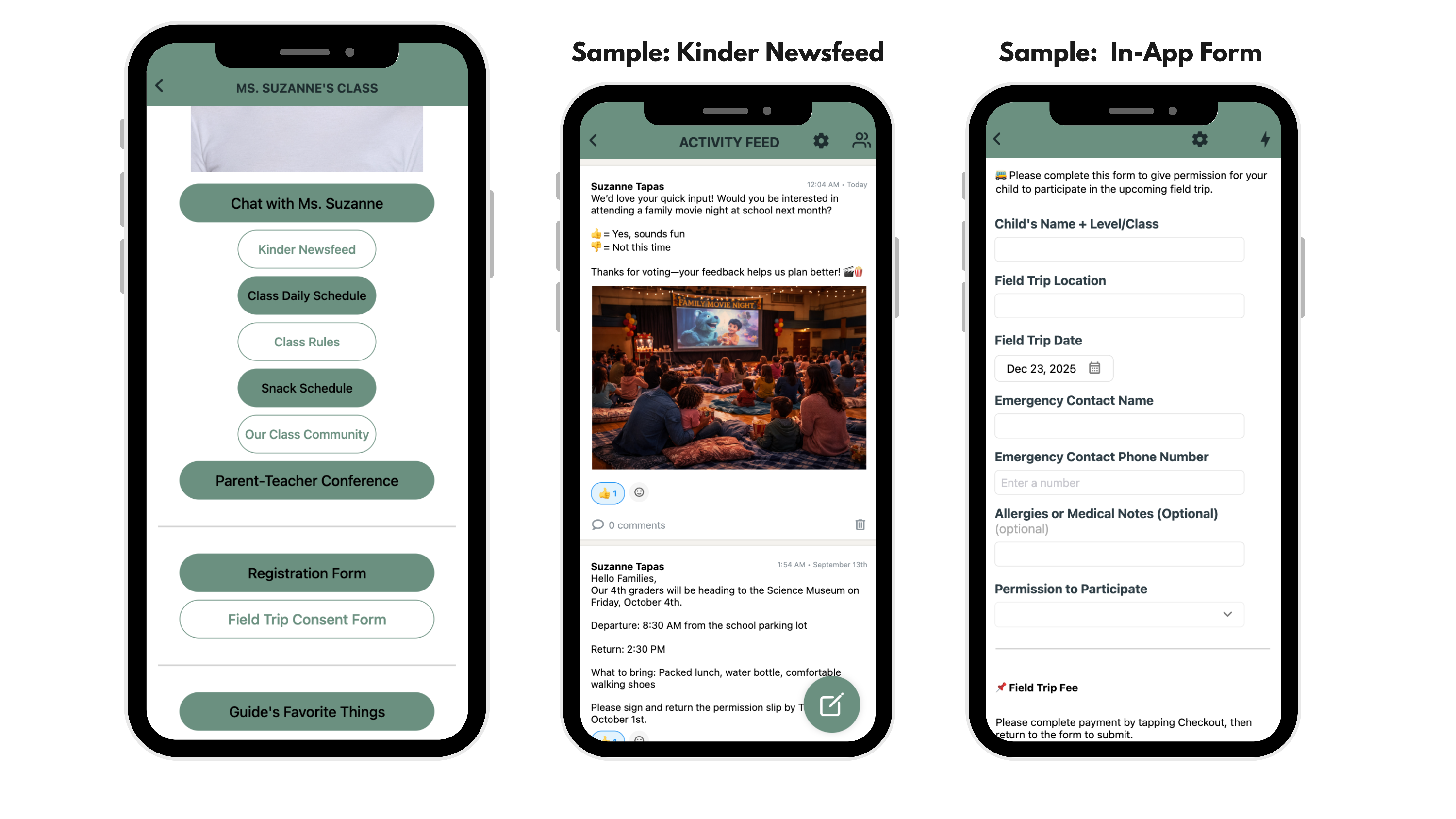 The Classroom screen is your dedicated space inside the app to share updates, resources, and communication with your classroom families. It’s designed to make it easy to keep parents informed without replacing the tools you already use, like Transparent Classroom.