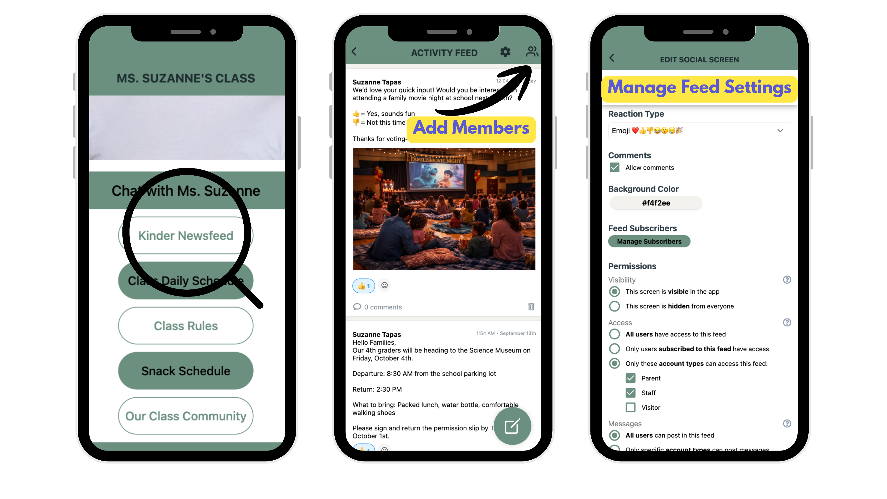 - Select the members you want to subscribe to the feed (for example, parents and/or staff).