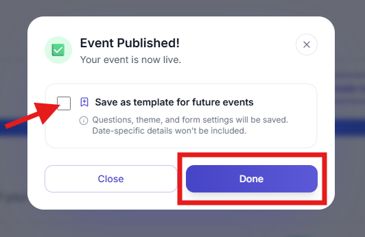- Tick the box โSave as template for future events.โ