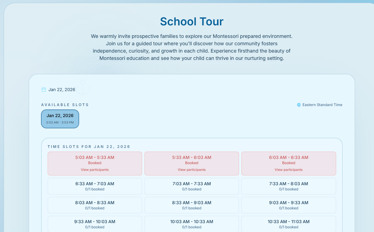 - Once a slot is booked, the option to View Participant will appear.