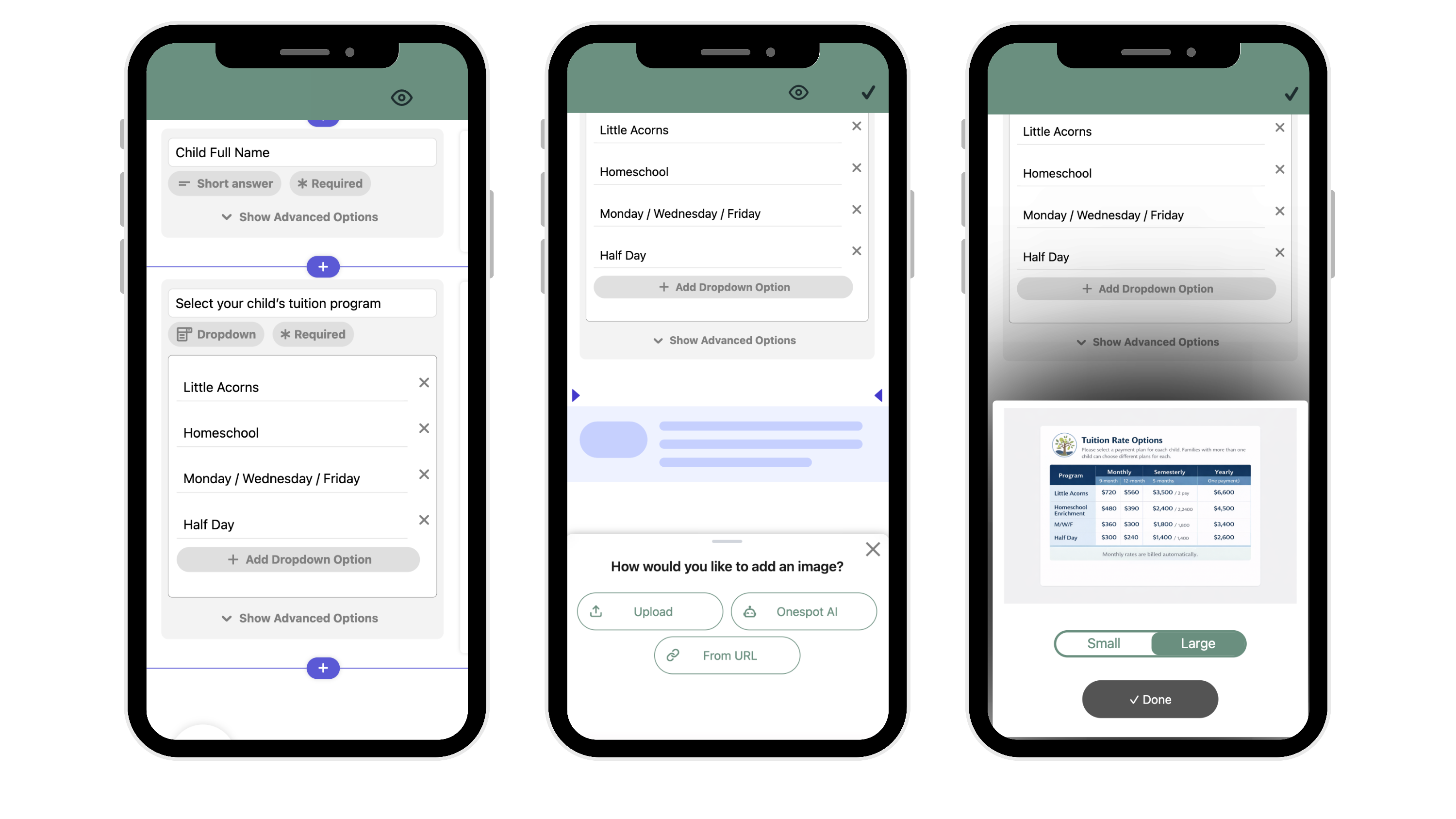 This guide walks you through how to create a Tuition Agreement Form using Onespot Forms. This form allows schools to collect parentsโ tuition payment preferences (monthly, semesterly, yearly) per child, so administrators can later invoice accurately and consistently.