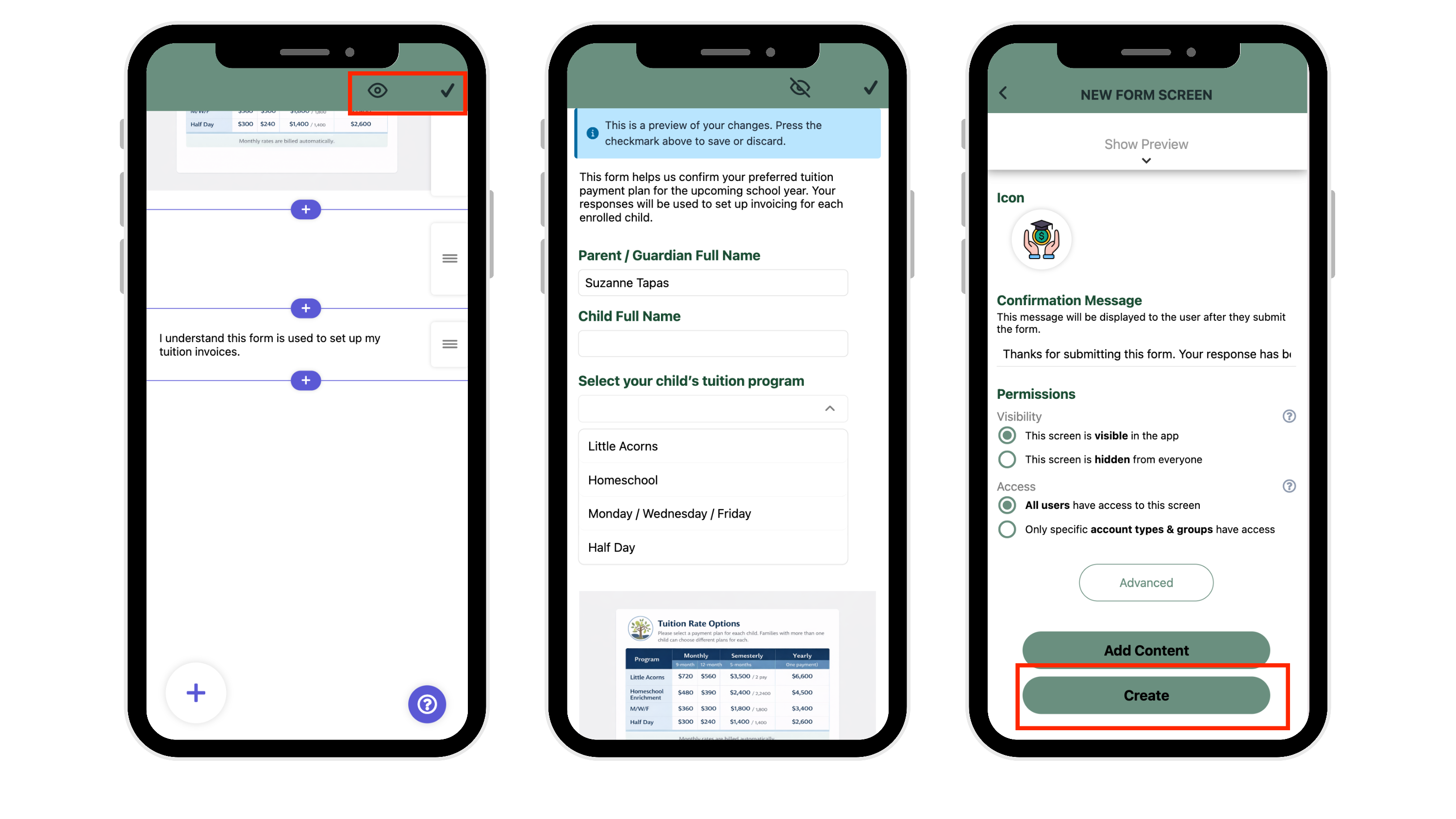 - Click the ๐ Eye icon to preview how the form will appear to parents