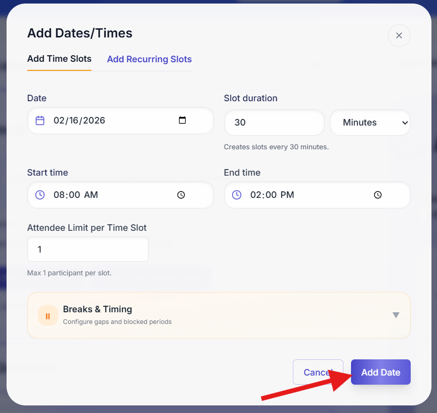 - Click Add Time‑Based Slots