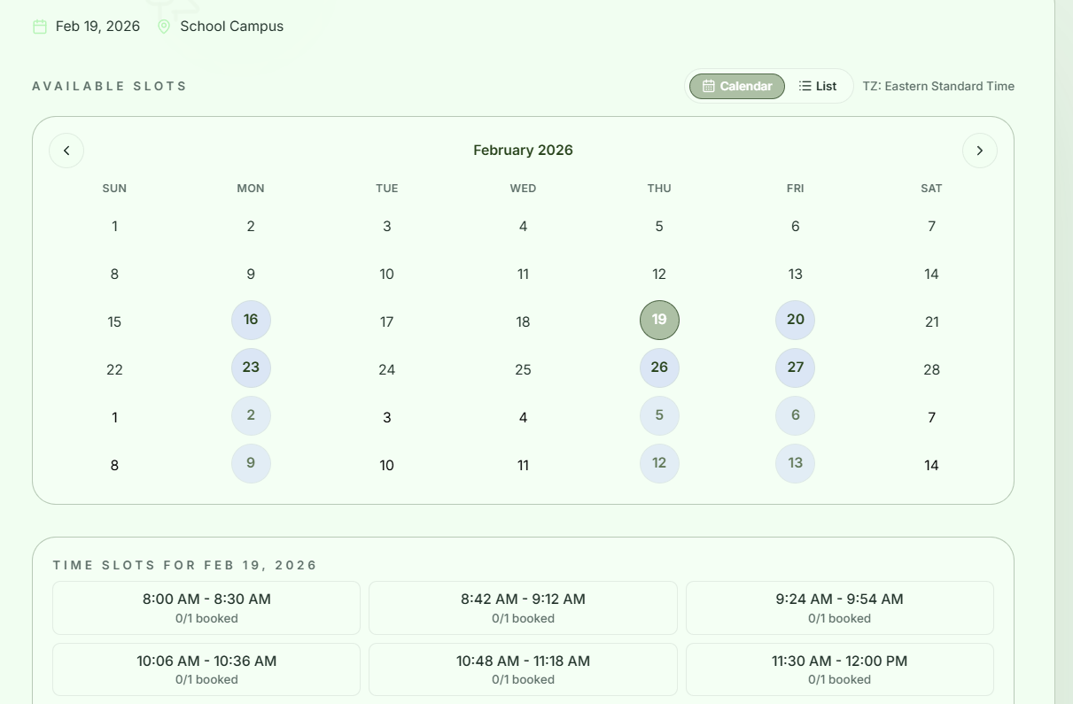 Need to organize classroom activities, parent conferences, or student work cycles into clear time blocks? Time‑based slots make it simple! Perfect for Montessori schools, you can schedule observations, small group lessons, or family meetings in structured intervals. SignUpJester helps you break your event into manageable time slots so teachers and parents can choose the times that fit best.