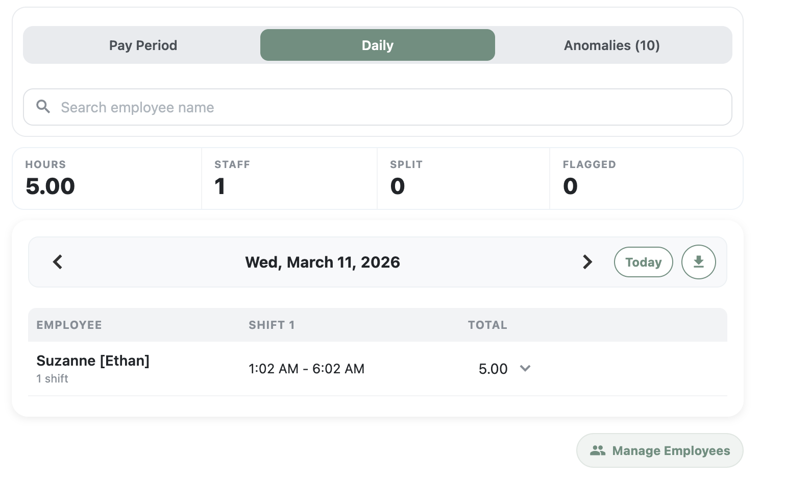 The Daily tab is best when you want to review one specific day instead of a full pay period.