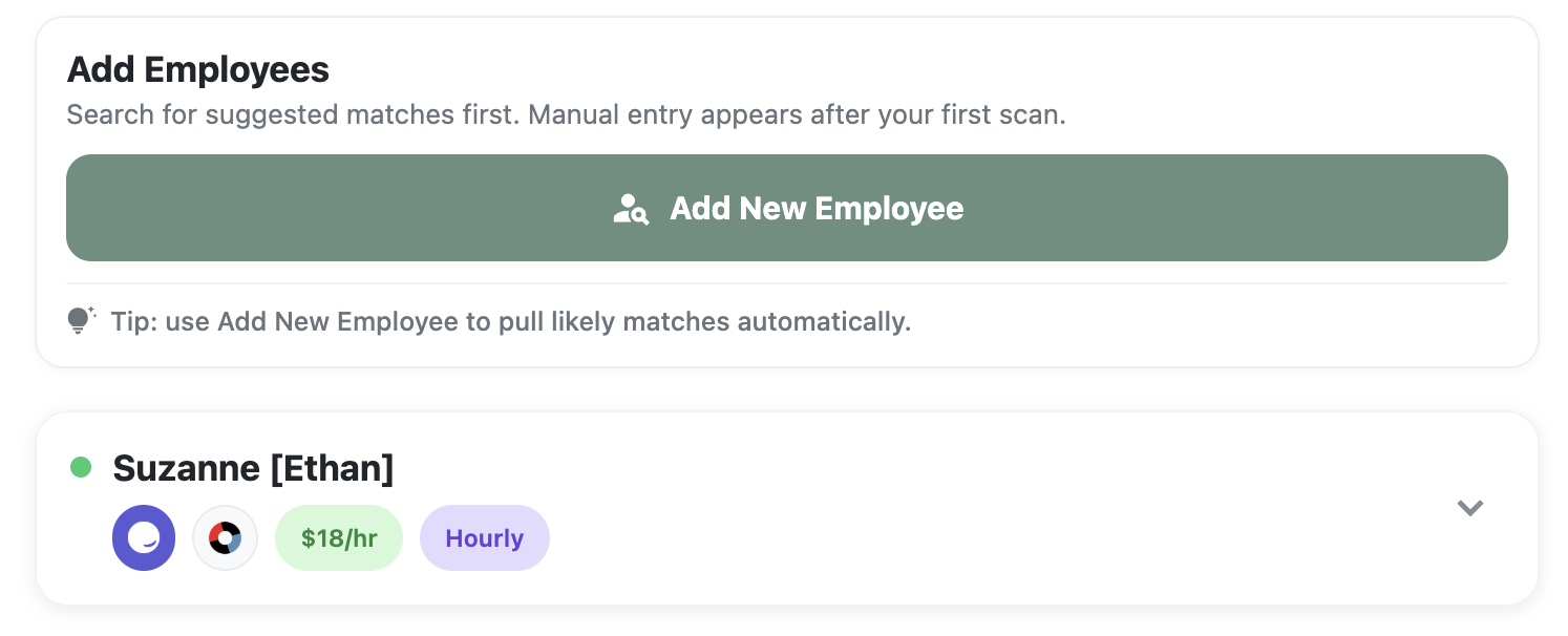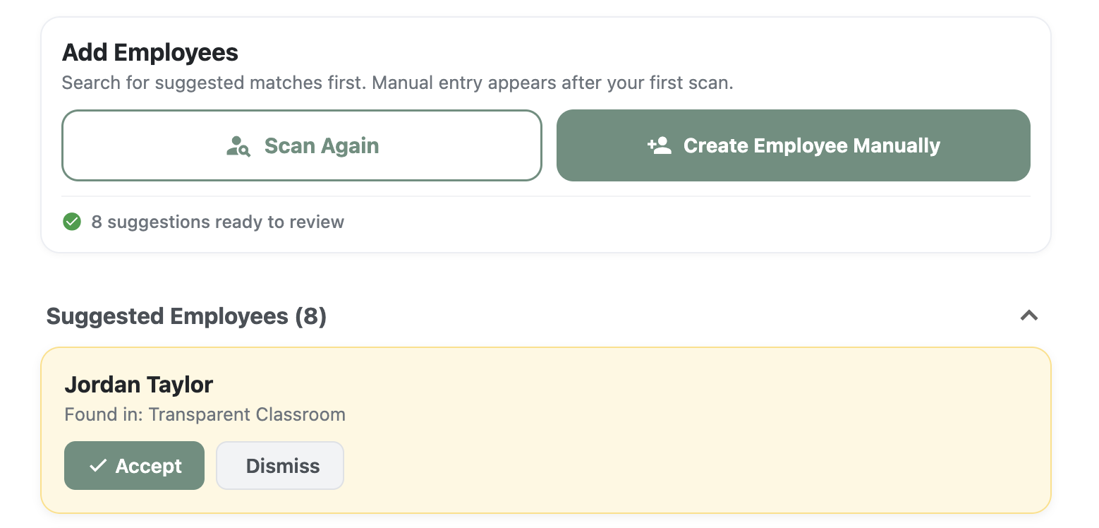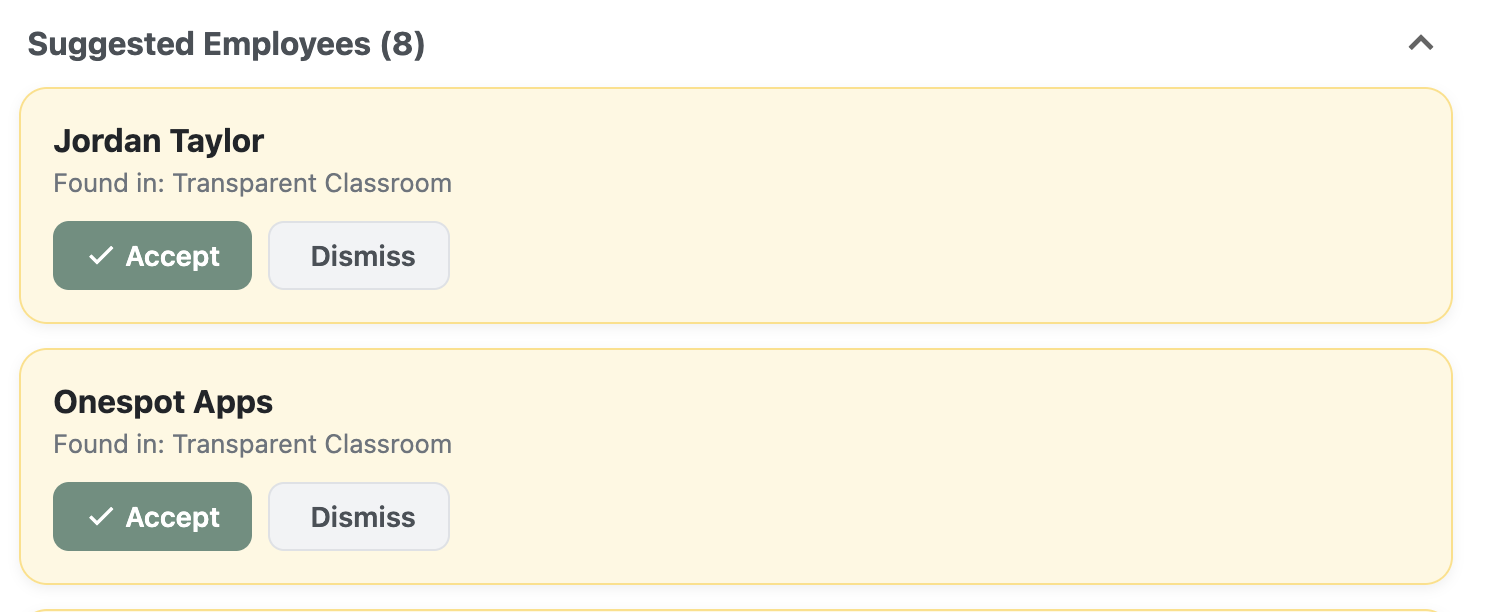 - Click Accept to add a suggested employee, or Dismiss to remove the suggestion.