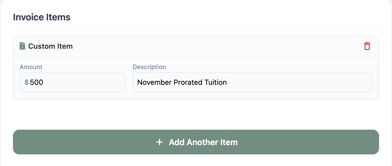When a student starts in the middle of a billing cycle, schools often need to charge only for the portion of the month the child attends before regular tuition begins.