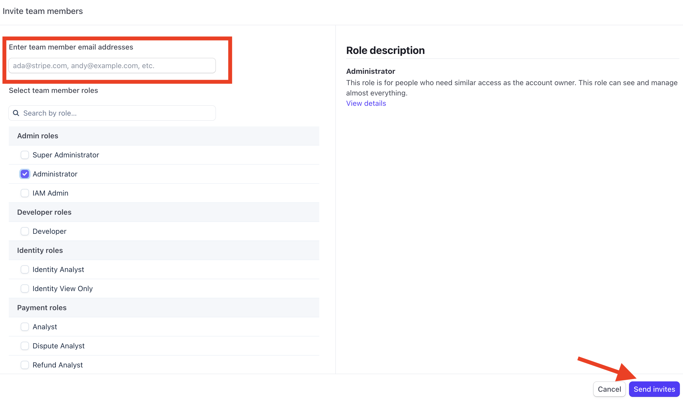 Stripe offers several admin-level roles depending on the permissions you want to grant.