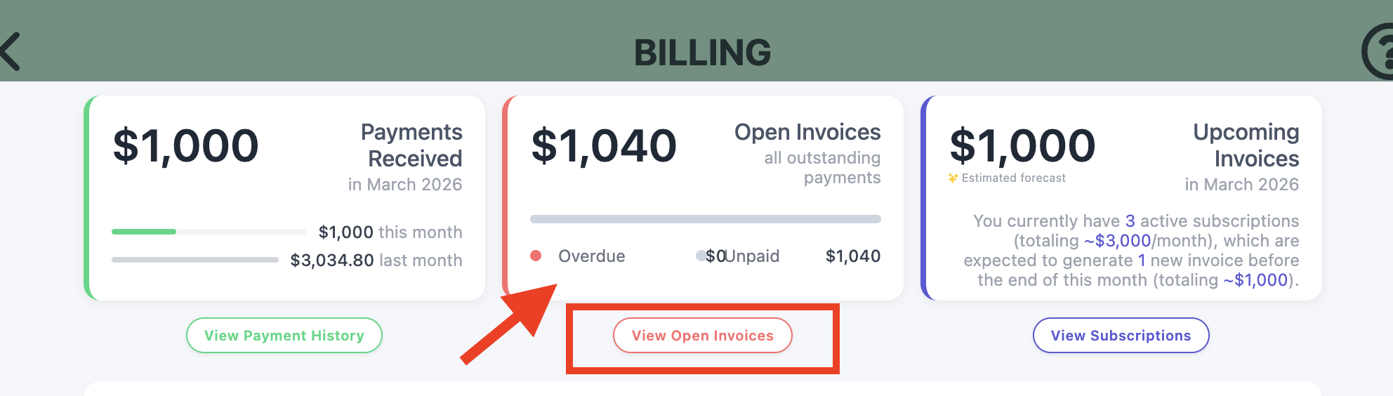 - Click View Open Invoices