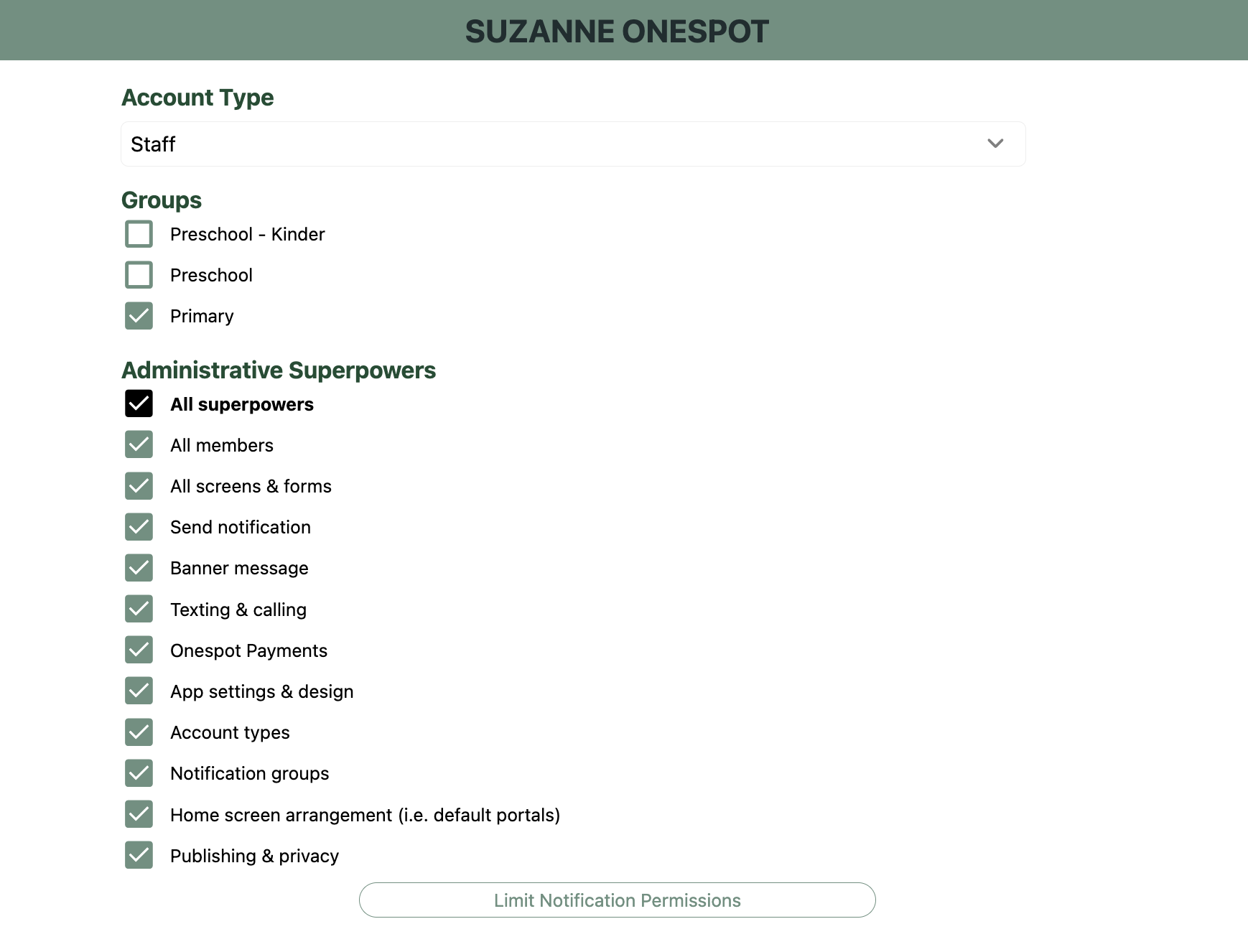 Superpowers are advanced permissions that control access to key areas like billing, settings, and messaging. These should only be given to a small number of trusted staff.
