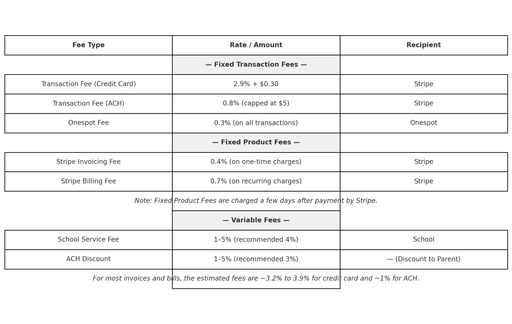- Invoicing (0.4% on one-time charges, like enrollment deposits)
